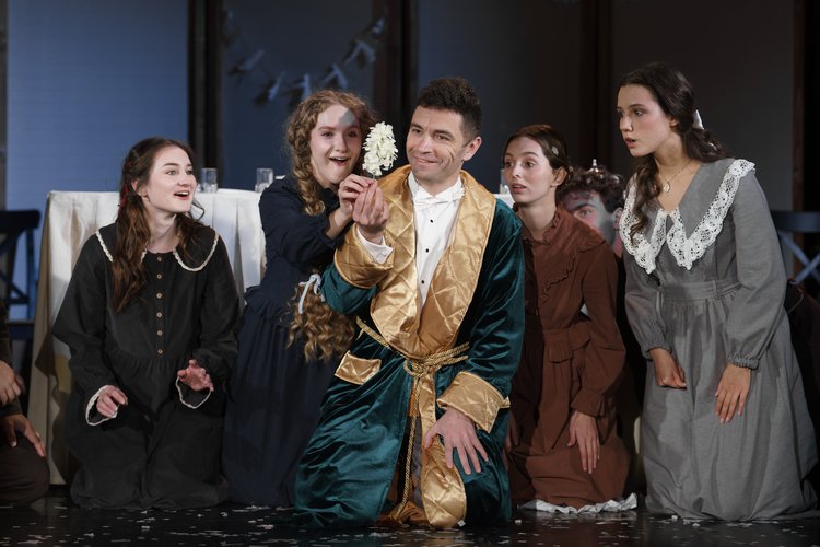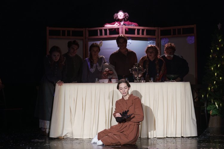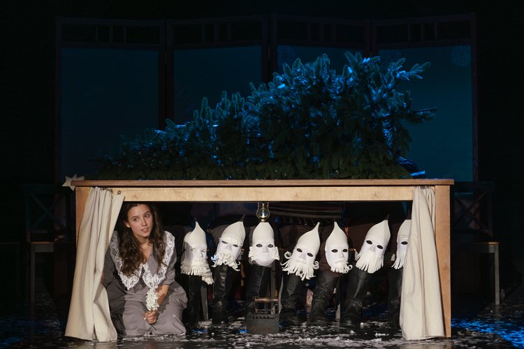 Пушкинское время, Петербург, сочельник. В ожидании Рождества, семья в сборе. Дети ждут чуда. Родители игриво переглядываются, что-то будет! Сегодня в гости к ним заглянет некто. Может быть, огромный мохнатый пёс, который расскажет о том, как пытался спасти одну Царевну, да не смог? А может, это артист-скоморох, которого родители пригласили колядовать, петь и рассказывать сказку? Или, покажется, вдруг, что это сам Александр Сергеевич? Великий поэт! А для детей, любимый сказочник - Дядя Саша! Этот спектакль создан в духе домашнего театра. Здесь, как во времена без новейших технологий, оживает фантазия. Дети, слушая сказку, сами становятся её героями. Попадают в сказочный мир, где любой, самый обычный предмет домашнего обихода, может стать куклой-персонажем, силой природы, волшебным зеркалом, да чем угодно, давая повод для игры. Этот спектакль о том, как можно, через игру, общаться с детьми, как их увлечь и заинтересовать. Заставить верить в чудо, и при этом, поговорить с ними о самых важных и серьёзных понятиях. О красоте внешней и красоте внутренней, душевной. О любви и зависти. О взрослении и ответственности. О хрупкости жизни.