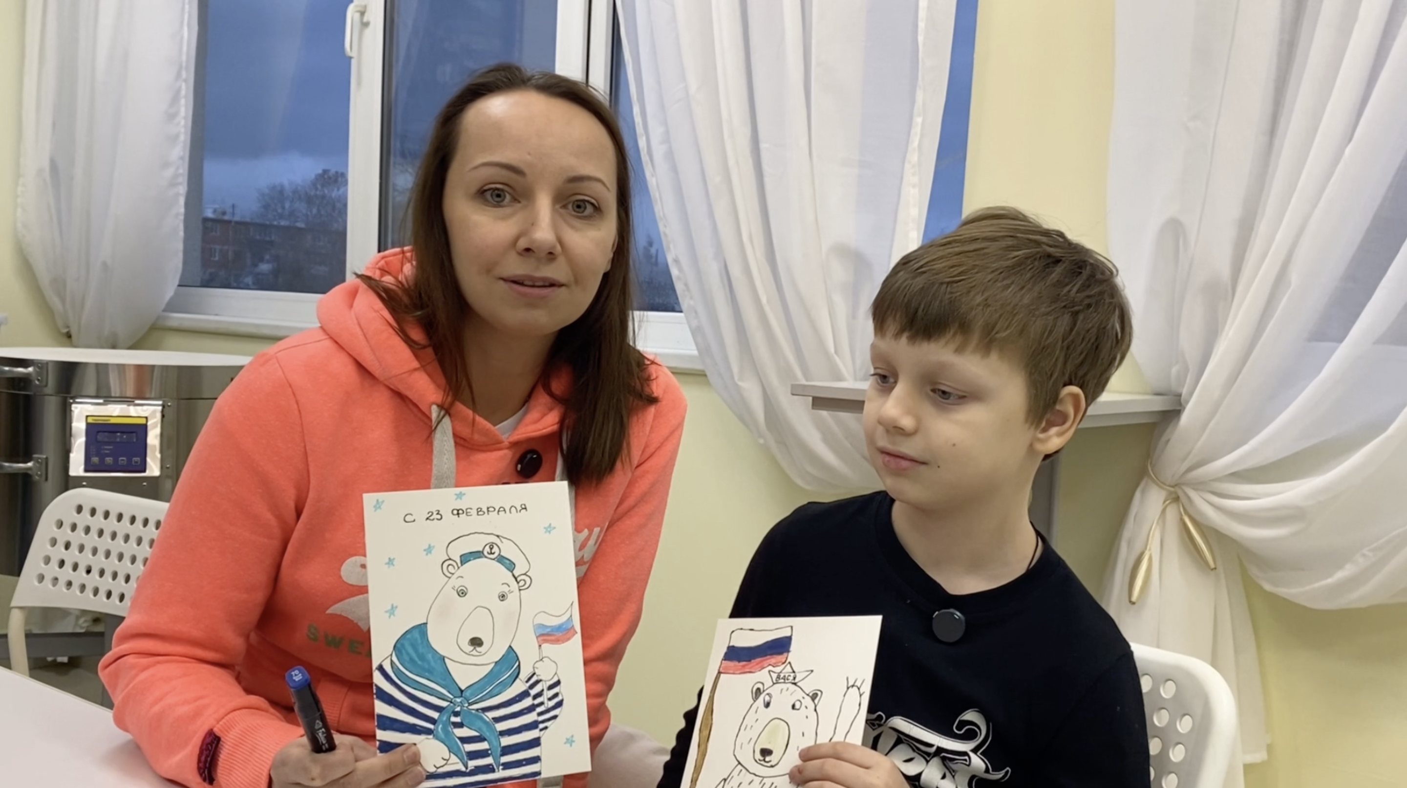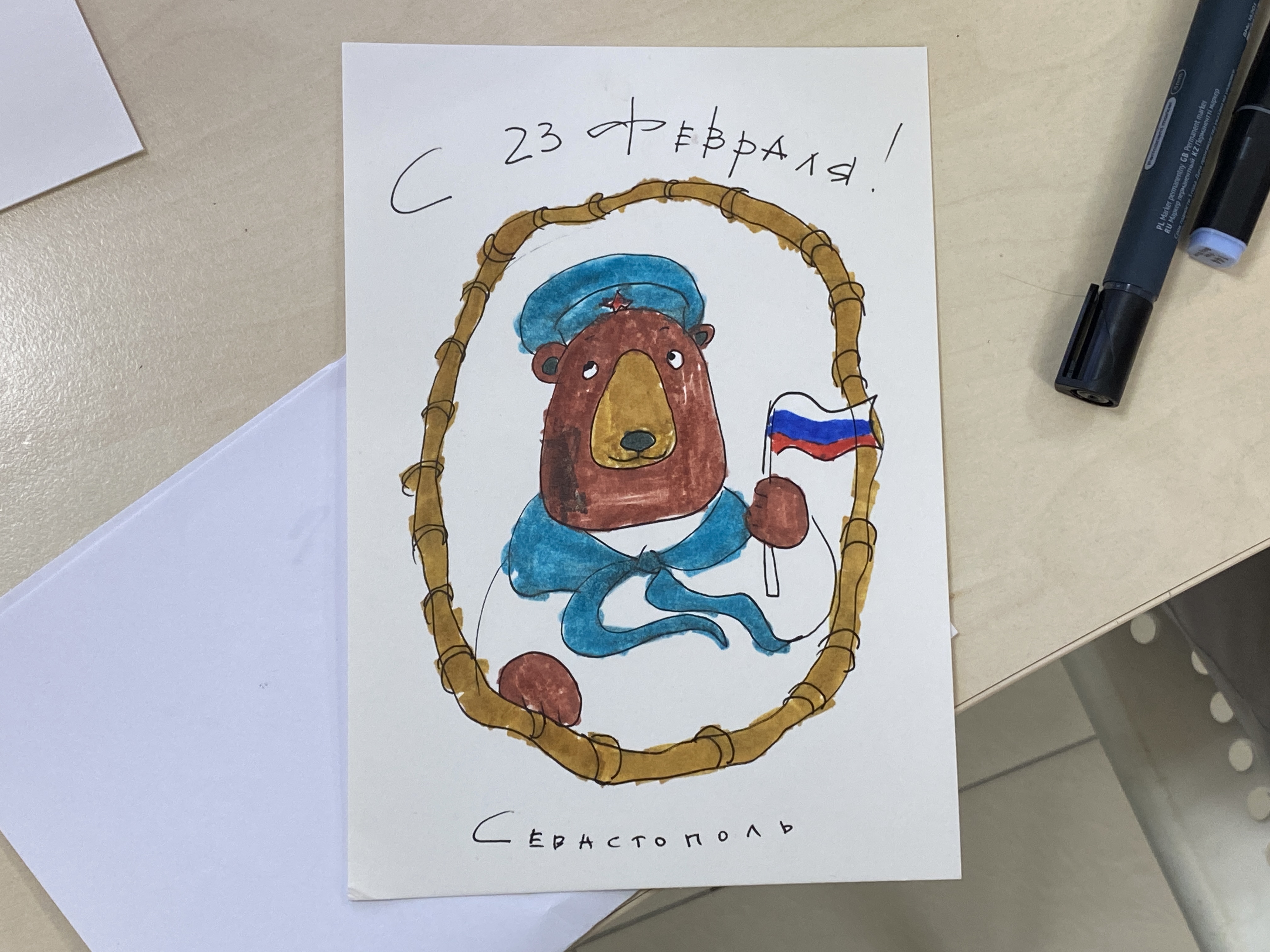 Под руководством педагога студии Татьяны Хорошавиной участники создавали открытки, приуроченные ко Дню защитника Отечества. Главным героем рисунков стал медведь в тельняшке – образ, наполненный глубоким смыслом. Медведь олицетворяет силу и мощь России, а тельняшка – символ русских моряков, их несгибаемой стойкости духа и верности флотским традициям.