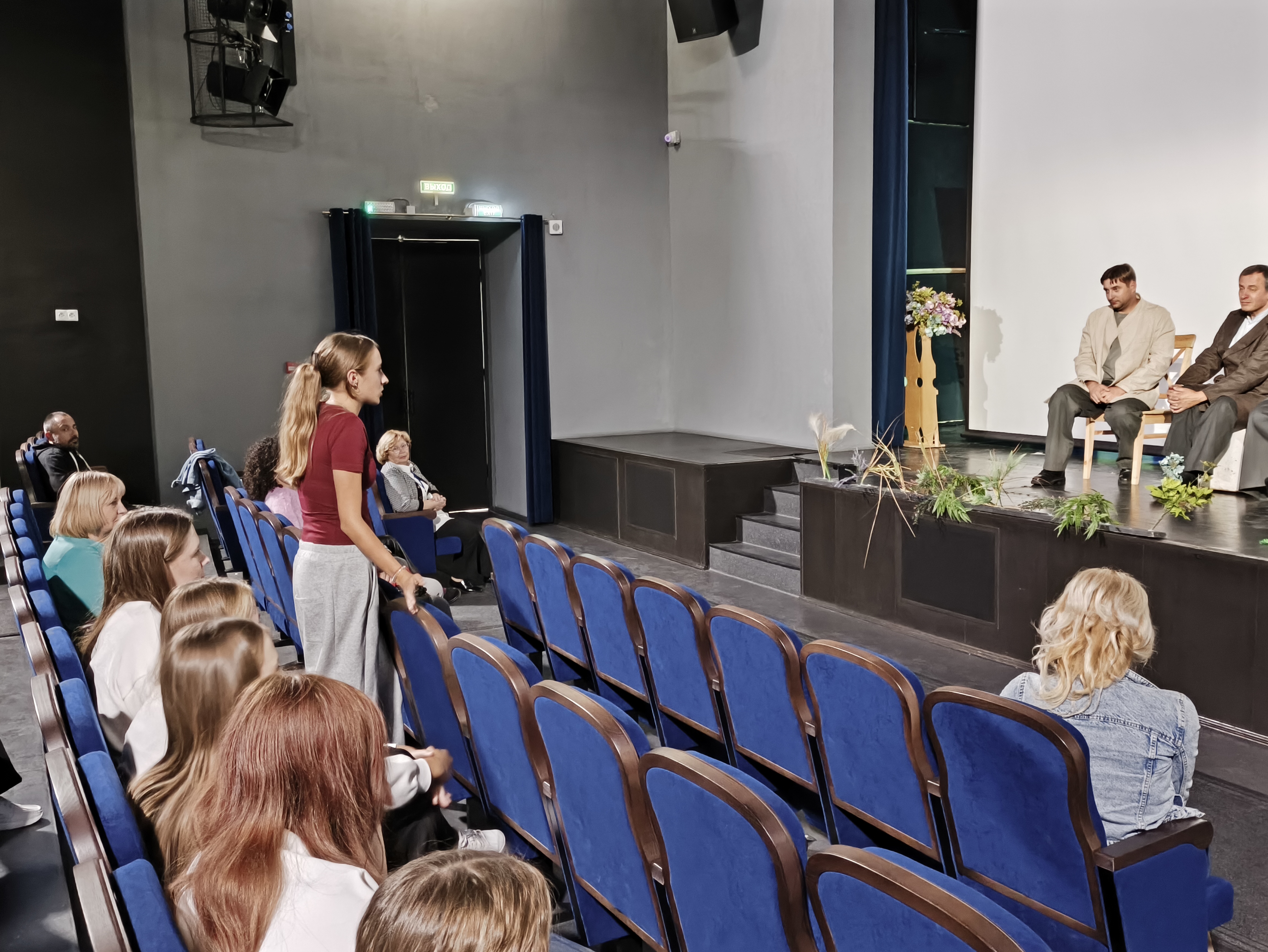 После спектакля мы пригласили зрителей на обсуждение с артистами в рамках нашего театрального дня «Школьная пятница». Эта встреча позволила каждому поделиться своими впечатлениями и задать вопросы о спектакле и творчестве.