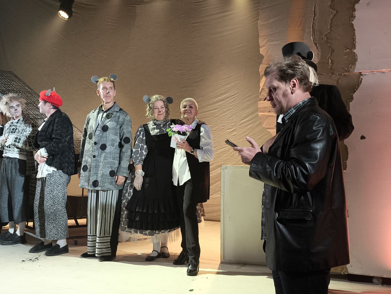 Особые эмоции подарил спектакль «Тео-театральный капитан», который посетили наши уважаемые гости. А по его окончании мы преподнесли виновникам торжества прекрасные цветы под бурные овации всего зала.
